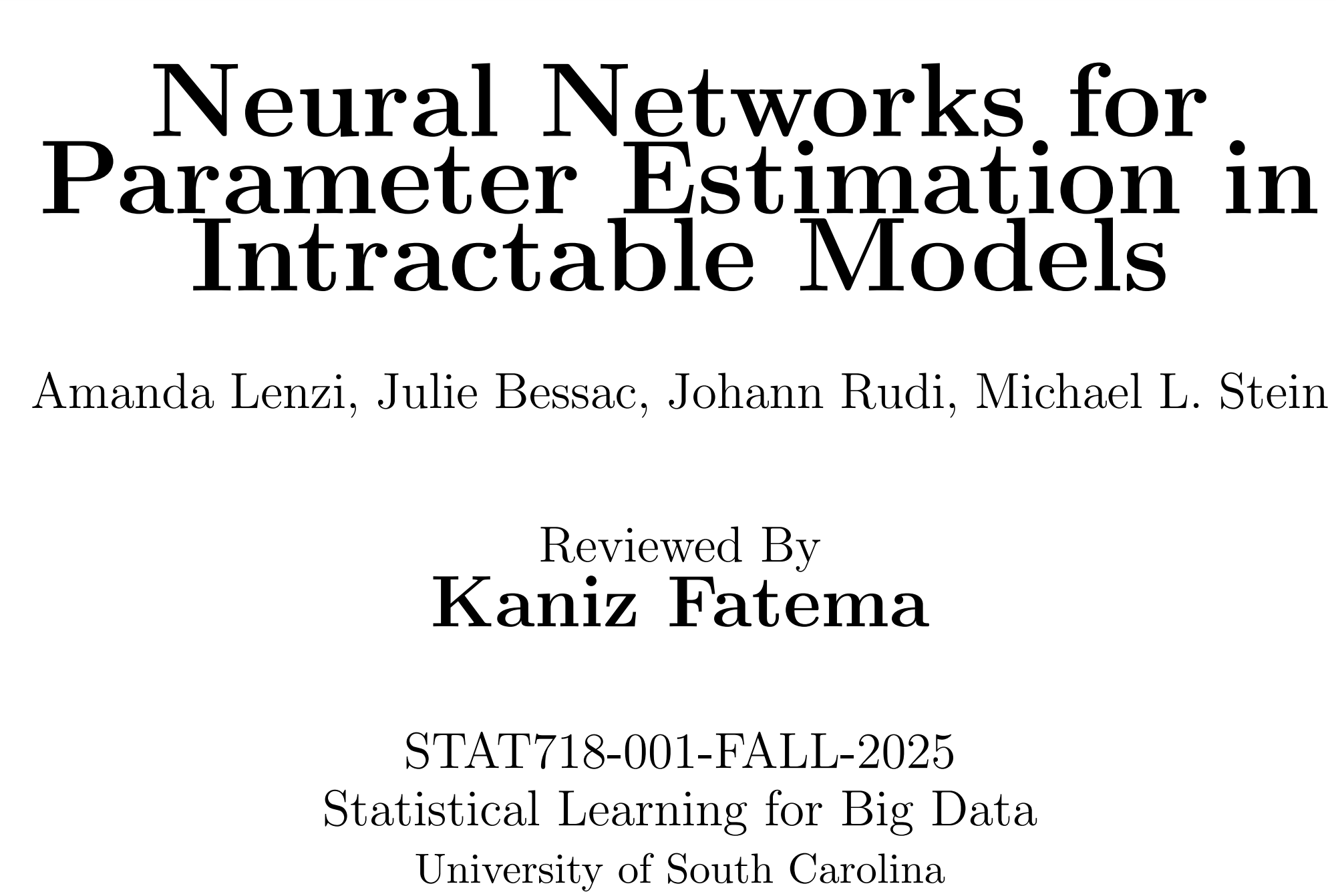 This project highlights how deep learning methods can estimate parameters in complex models with intractable likelihoods.